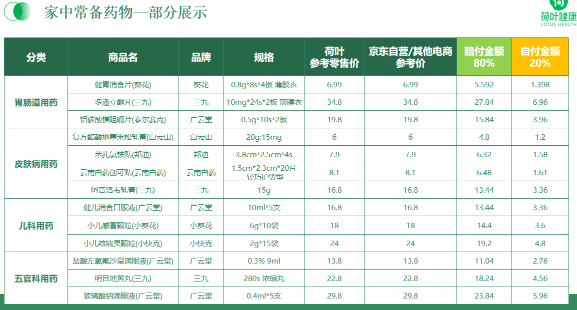 首次开药,100元以内的非特定药品100%赔付,超出100元的非特定药品80%赔付;